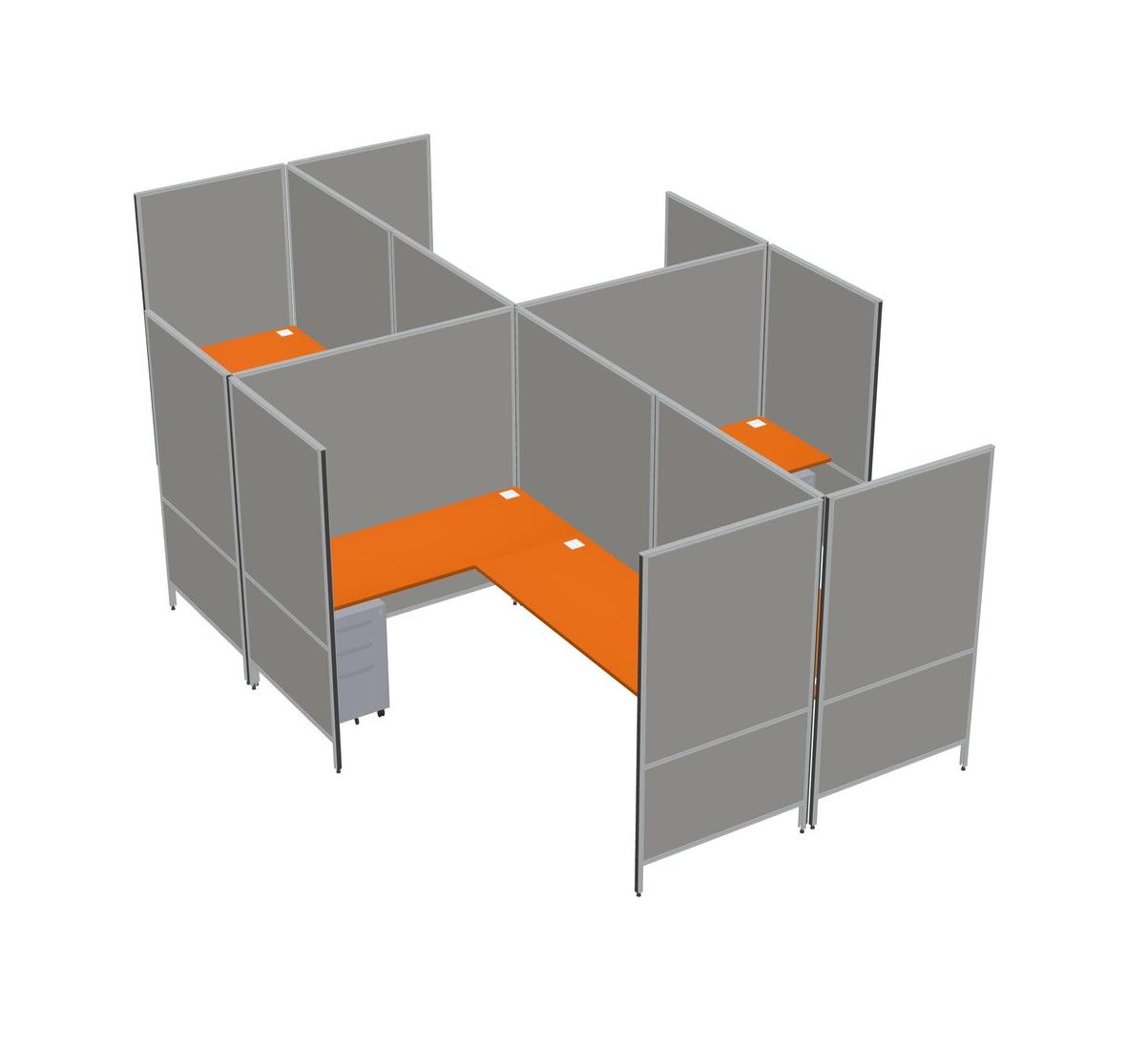 Système De Panneaux Modulaires Modernes Orange En Forme De L + Tiroirs Mobiles En Métal