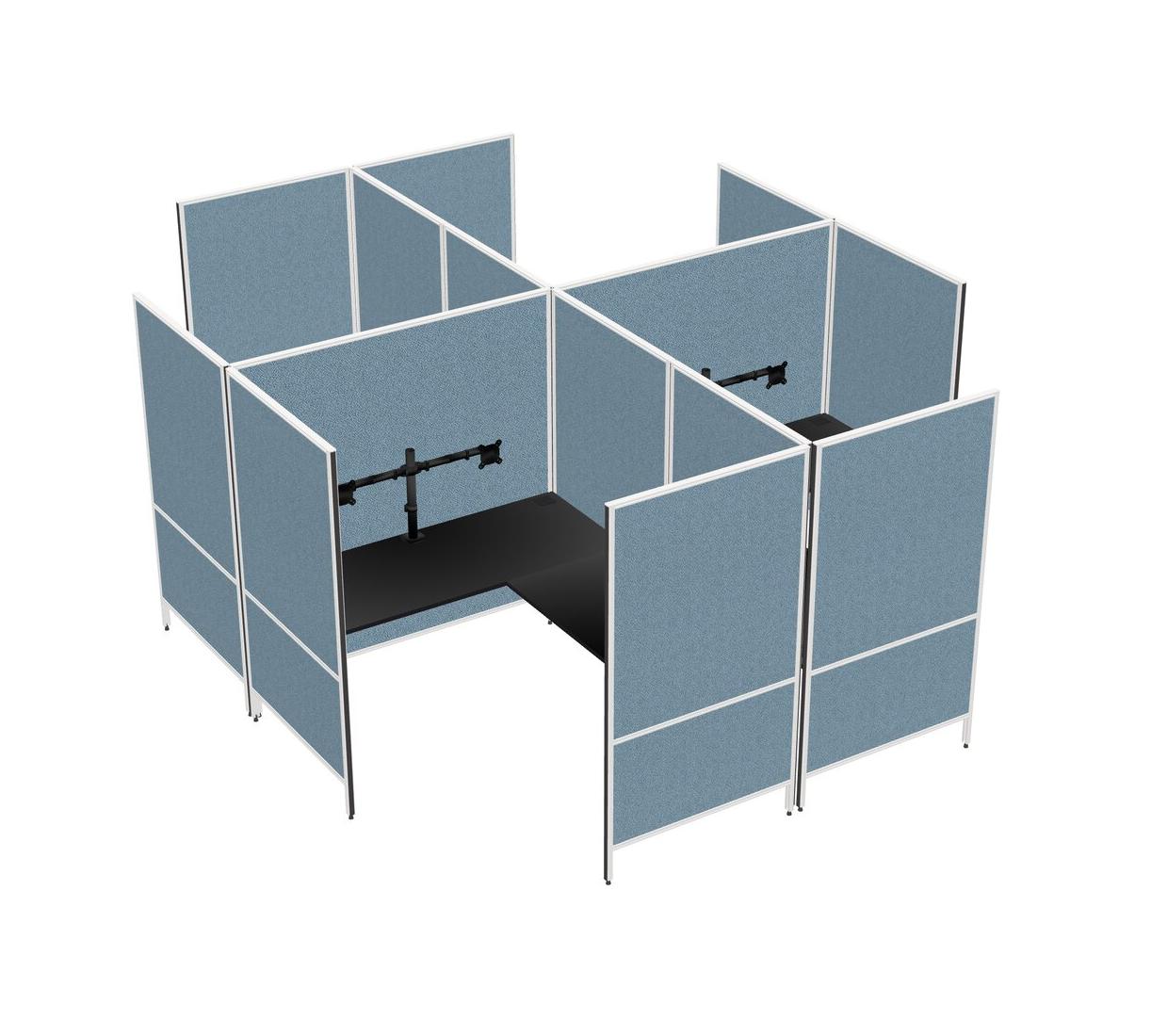 Système De Panneaux Modulaires Modernes Noirs En Forme De L à Quatre Bras + Bras De Moniteur (double Bras)