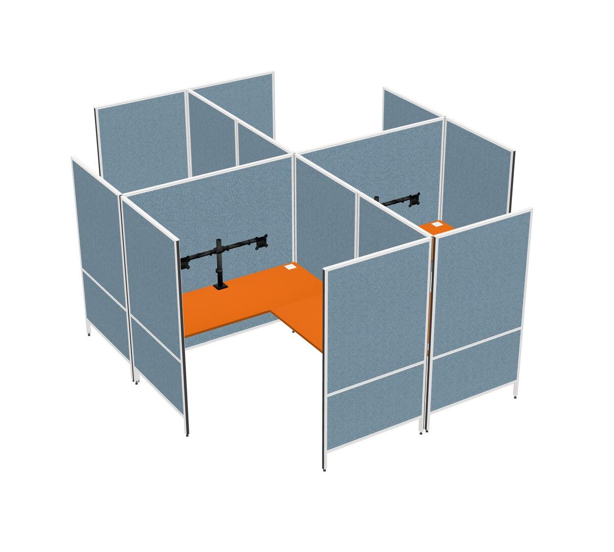 Système De Panneaux Modulaires Modernes Orange En Forme De L à Quatre Bras + Bras De Moniteur (double Bras)