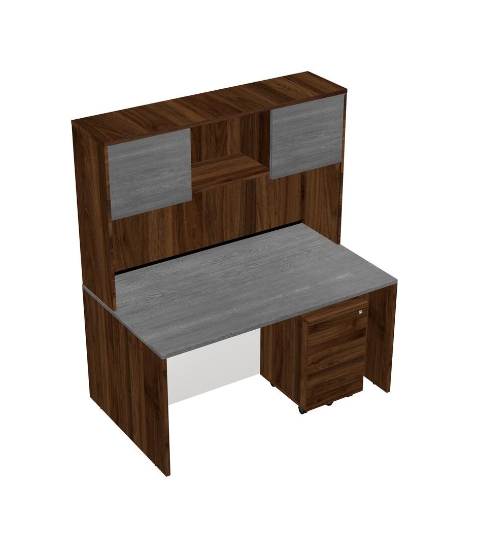Grey Rectangular Office Desk Plus Columbia Walnut Wooden Mobile Drawers And Columbia Walnut Hutch