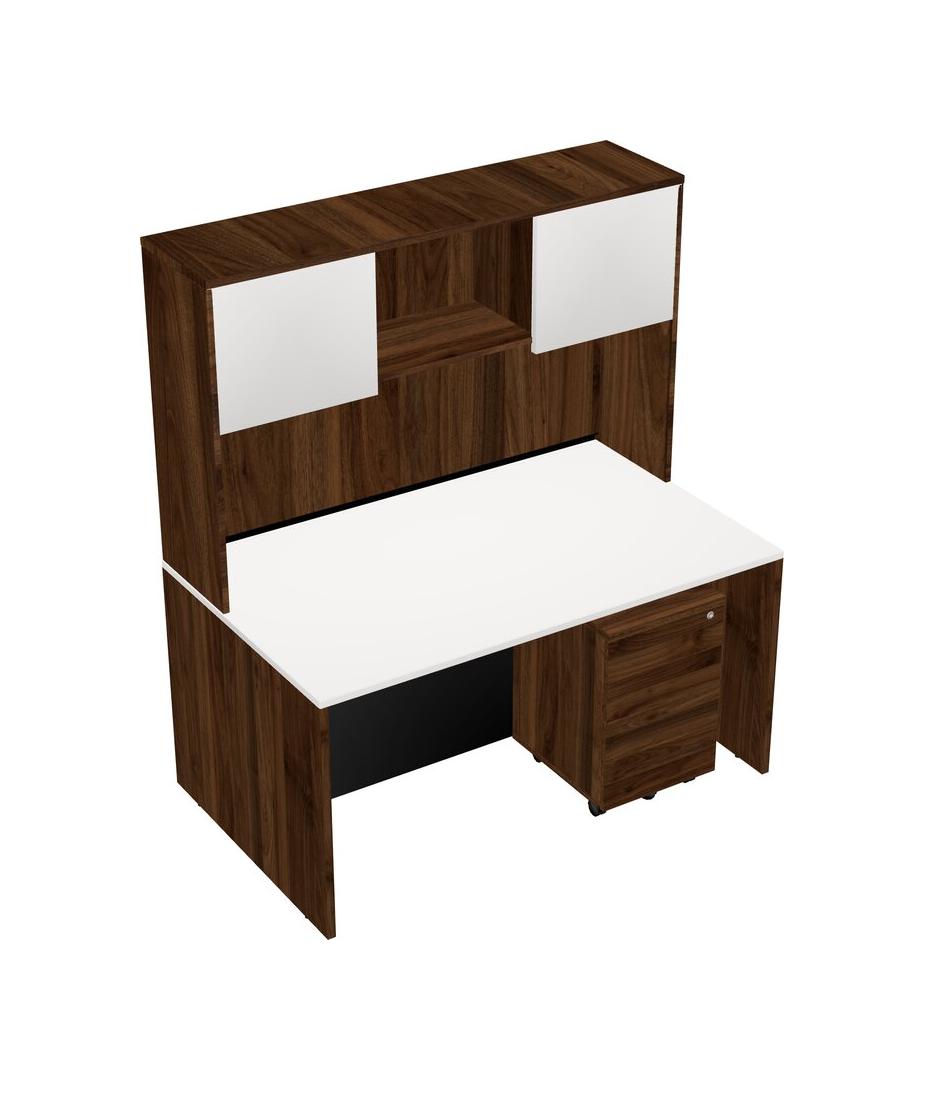 Bureau Rectangulaire Blanc Avec Tiroirs Mobiles En Bois De Noyer Columbia Et Huche En Noyer Columbia
