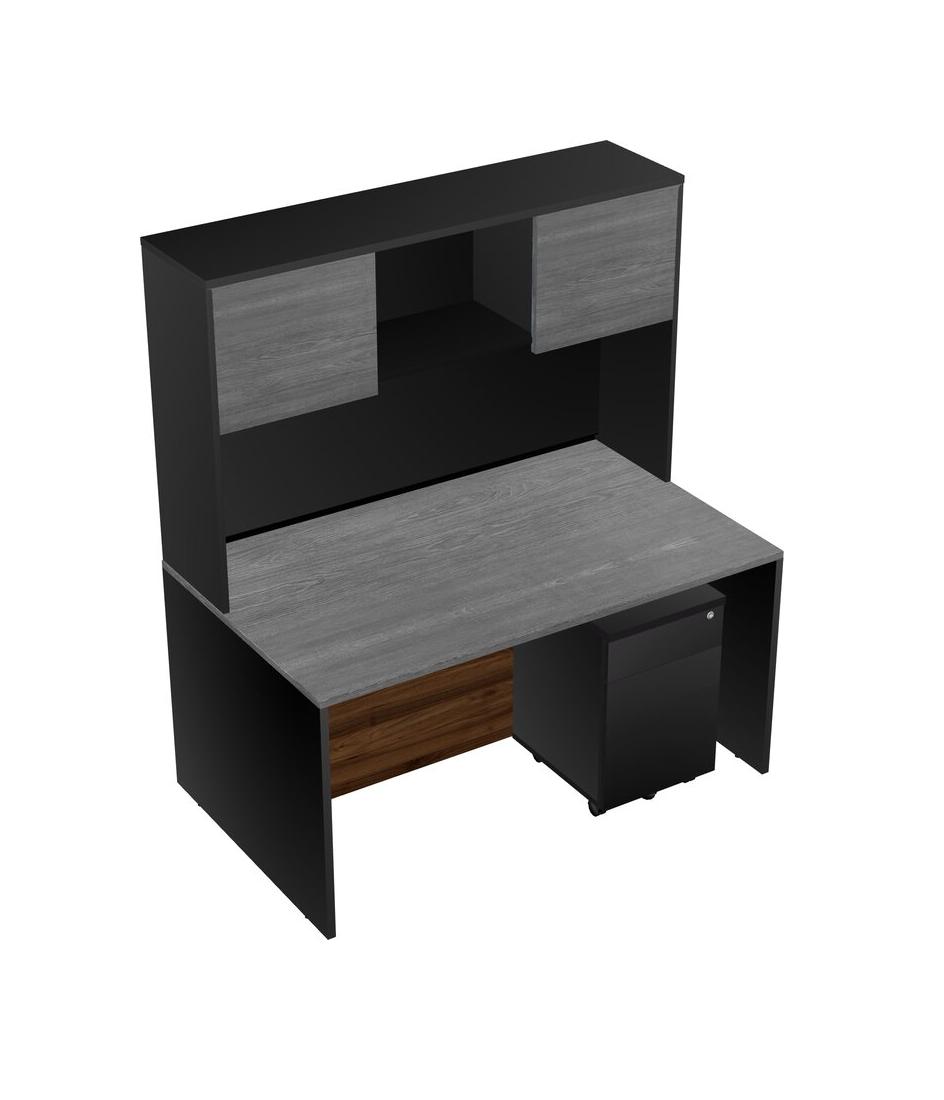 Bureau Rectangulaire Gris Avec Tiroirs Mobiles En Bois Noir Et Bahut Noir