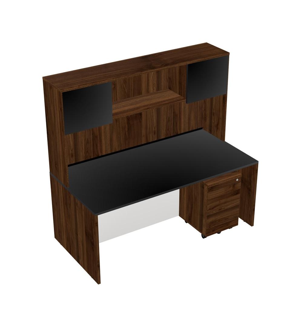 Bureau Rectangulaire Noir Avec Tiroirs Mobiles En Bois De Noyer Columbia Et Huche En Noyer Columbia