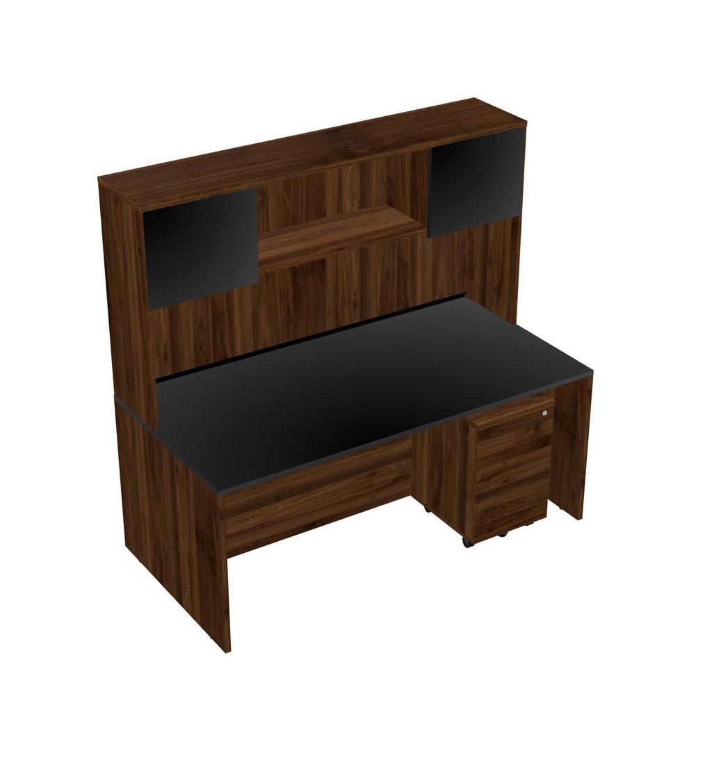 Bureau Rectangulaire Noir Avec Tiroirs Mobiles En Bois De Noyer Columbia Et Huche En Noyer Columbia