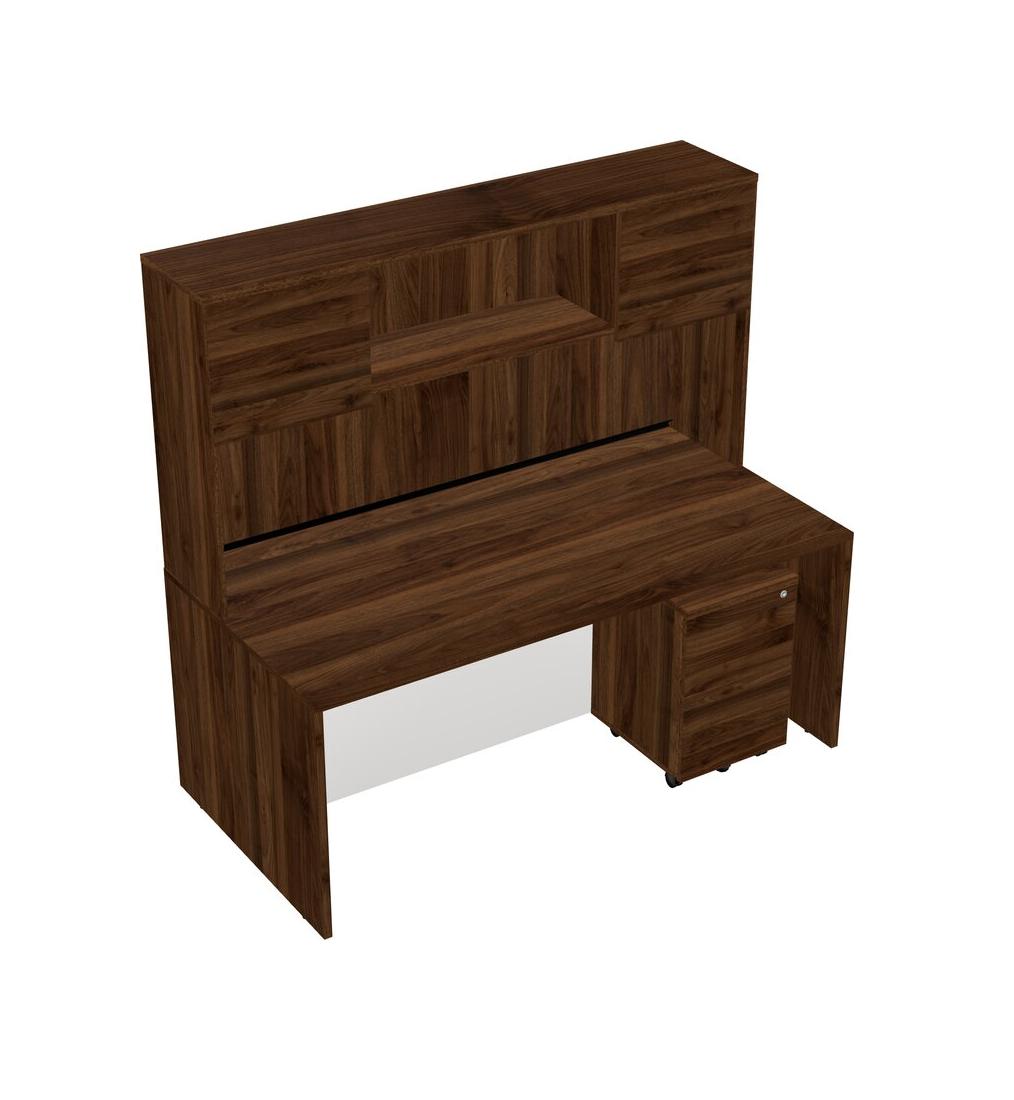 Bureau Rectangulaire En Noyer Columbia, Tiroirs Mobiles En Bois Et Clapier En Noyer Columbia
