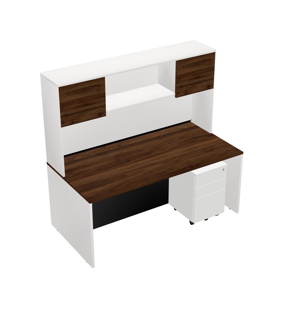 Bureau Rectangulaire En Noyer Columbia Avec Tiroirs Mobiles En Bois Blanc Et Bahut Blanc