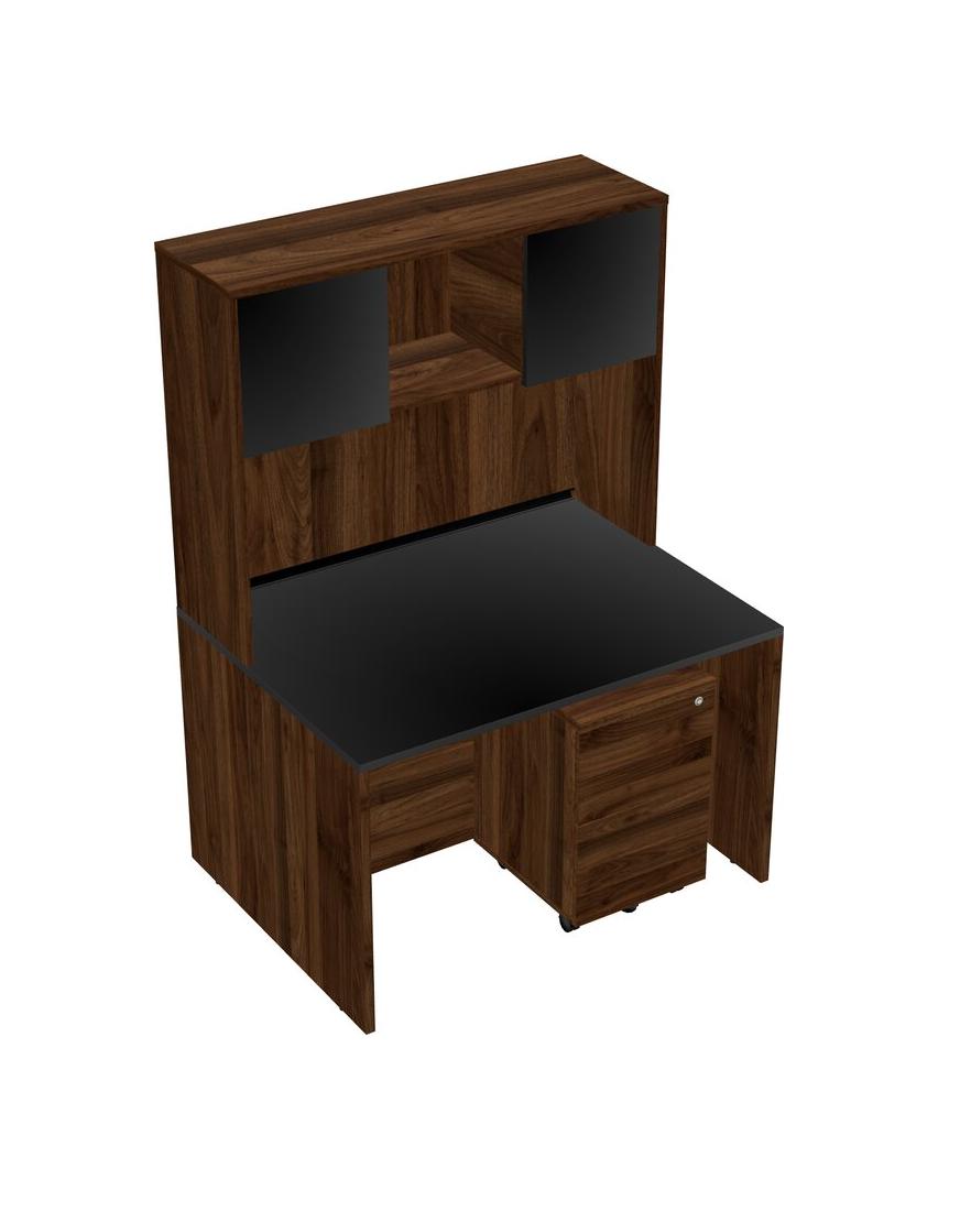 Bureau Rectangulaire Noir Avec Tiroirs Mobiles En Bois De Noyer Columbia Et Huche En Noyer Columbia