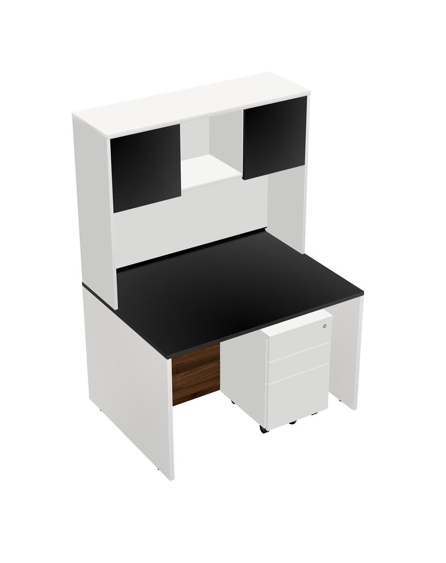 Bureau Rectangulaire Noir Avec Tiroirs Mobiles En Bois Blanc Et Bahut Blanc