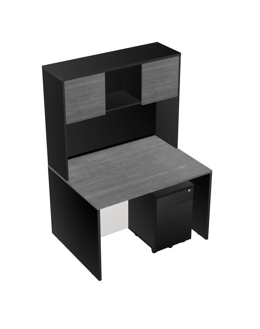 Bureau Rectangulaire Gris Avec Tiroirs Mobiles En Bois Noir Et Bahut Noir