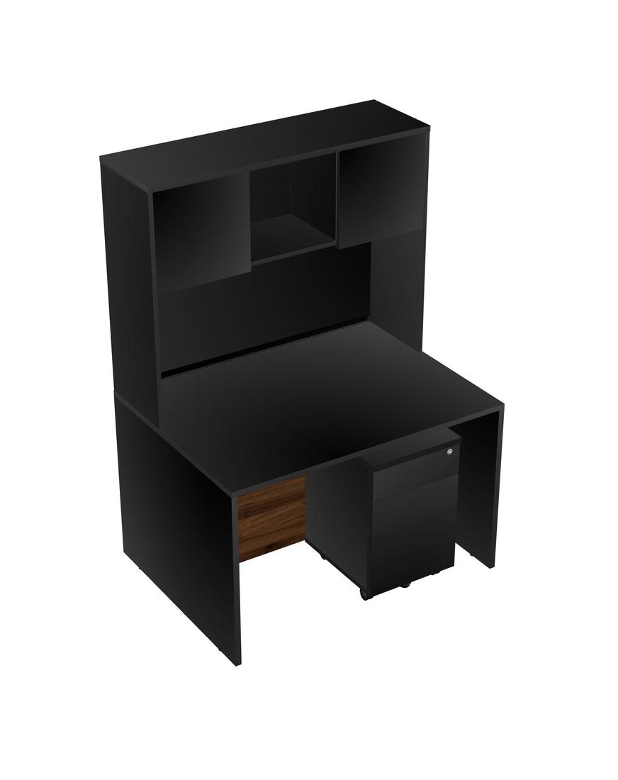 Bureau Rectangulaire Noir Avec Tiroirs Mobiles En Bois Noir Et Clapier Noir
