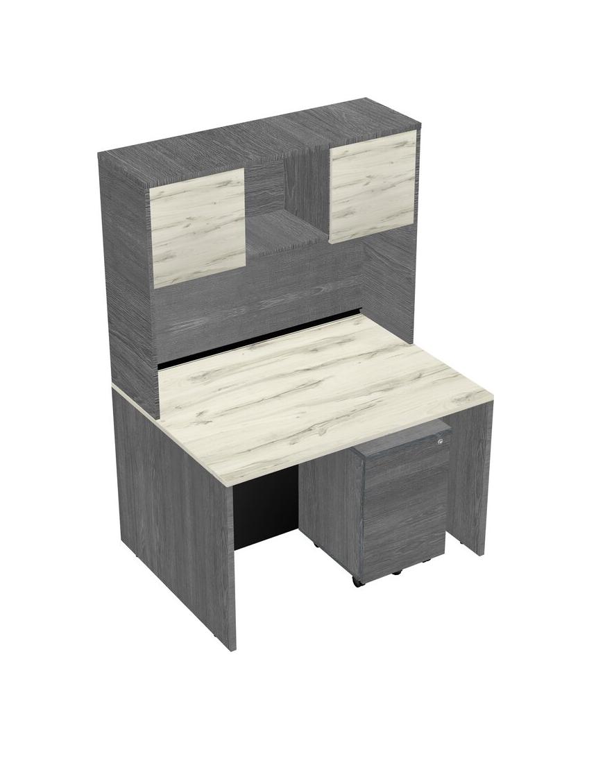 Heinne Holz Rectangular Office Desk Plus Grey Wooden Mobile Drawers And Grey Hutch