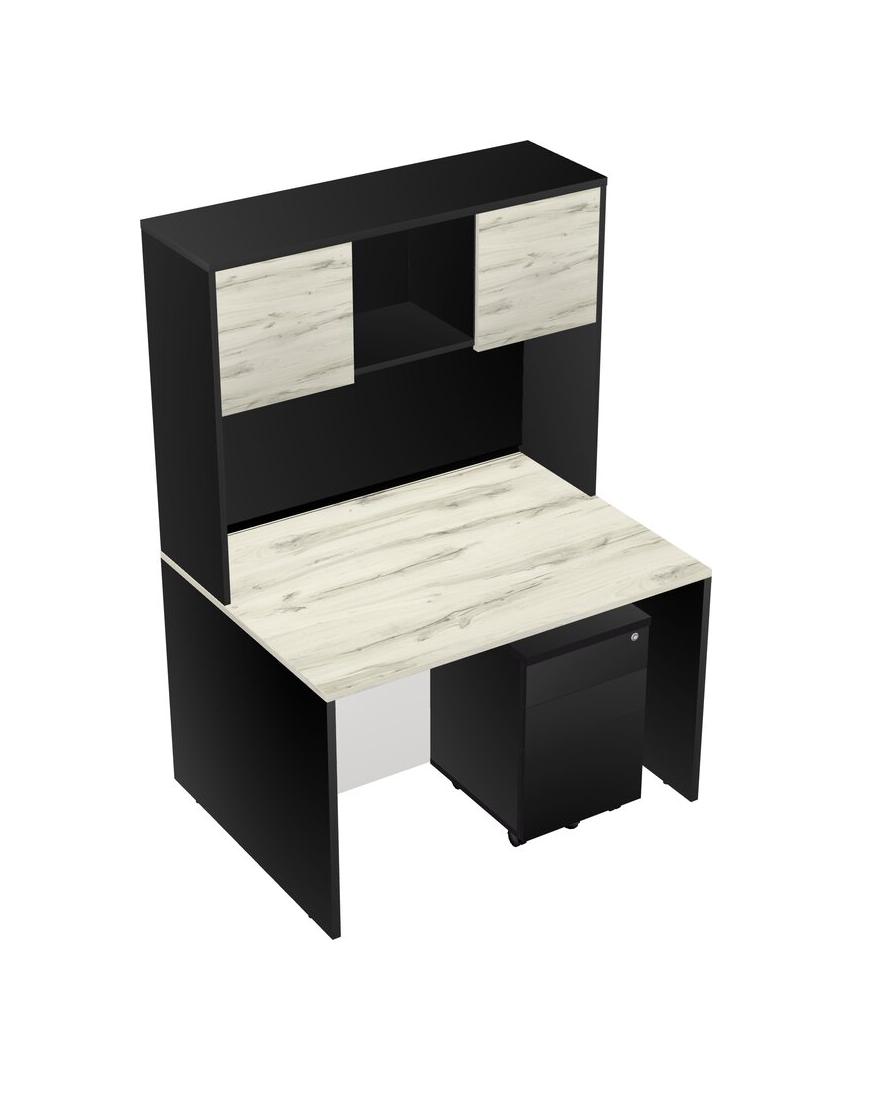 Heinne Holz Rectangular Office Desk Plus Black Wooden Mobile Drawers And Black Hutch