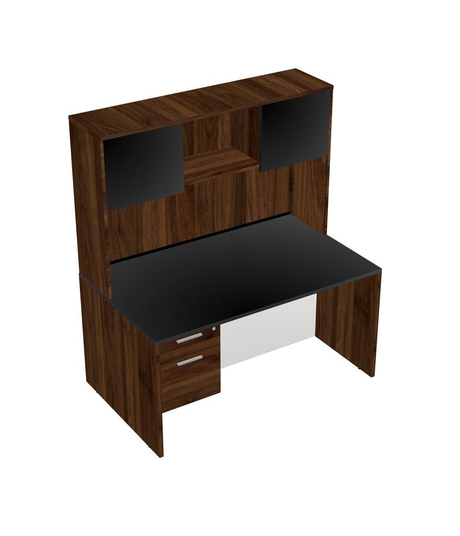 Bureau Rectangulaire Noir Avec Tiroirs Suspendus En Noyer Columbia Et Huche En Noyer Columbia