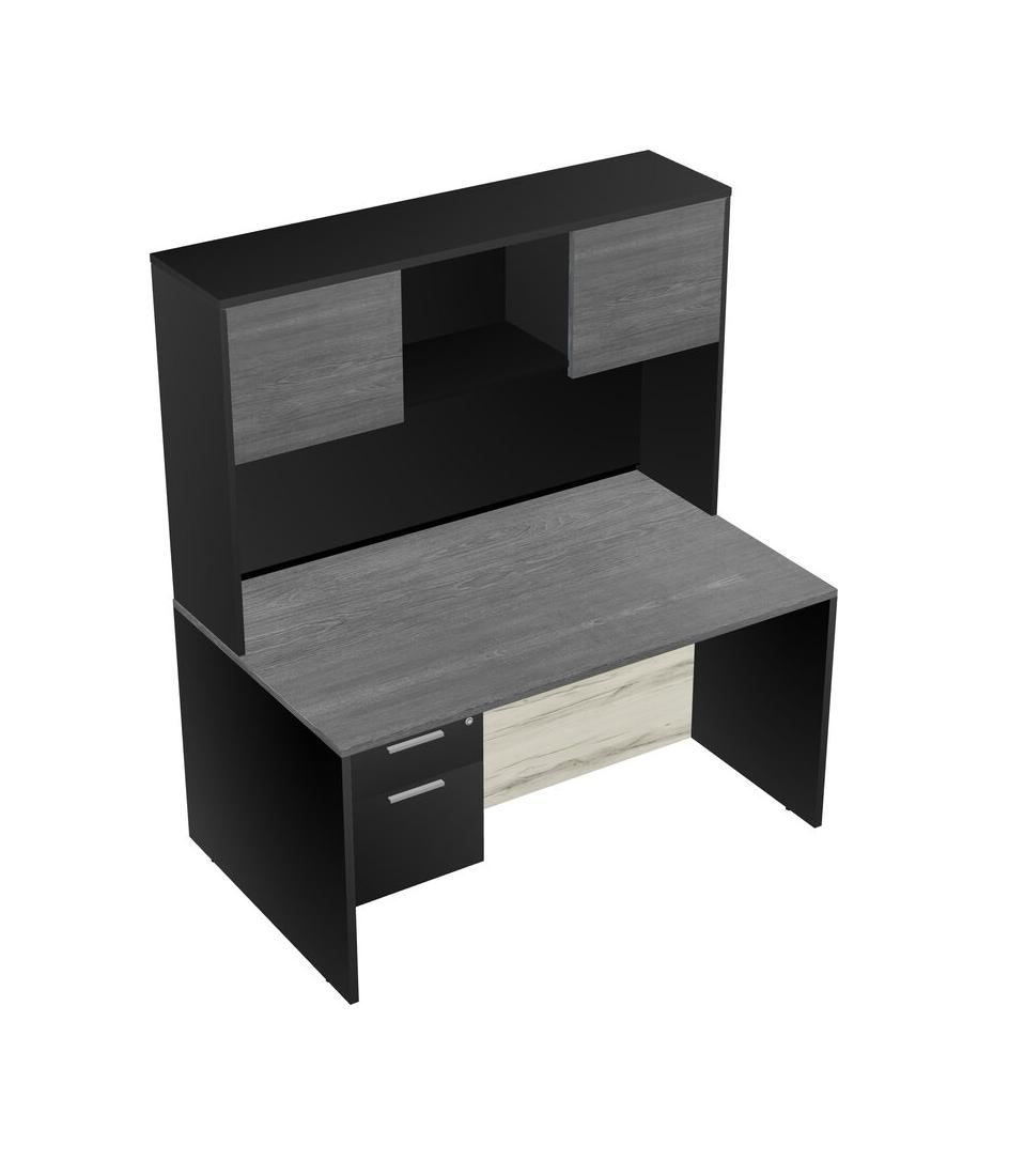 Bureau Rectangulaire Gris Avec Tiroirs Suspendus Noirs Et Bahut Noir