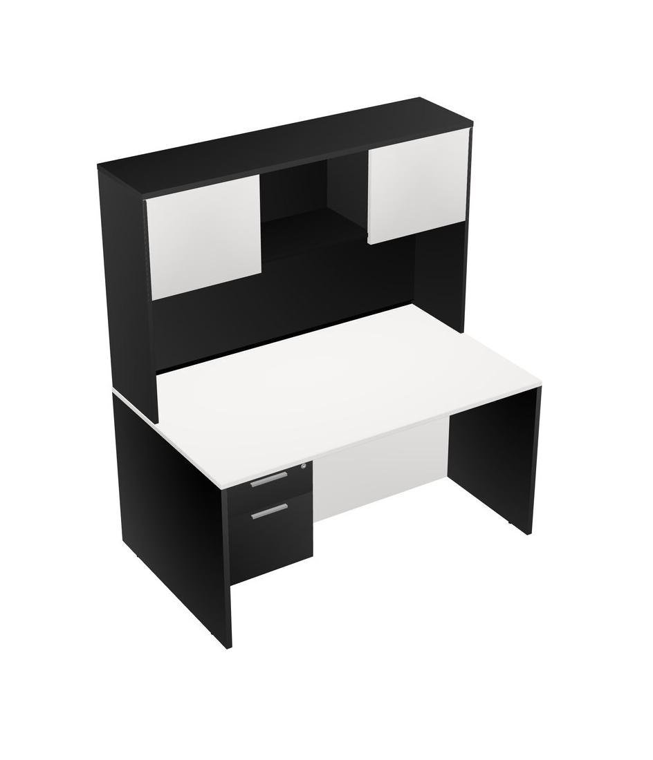 Bureau Rectangulaire Blanc Avec Tiroirs Suspendus Noirs Et Bahut Noir