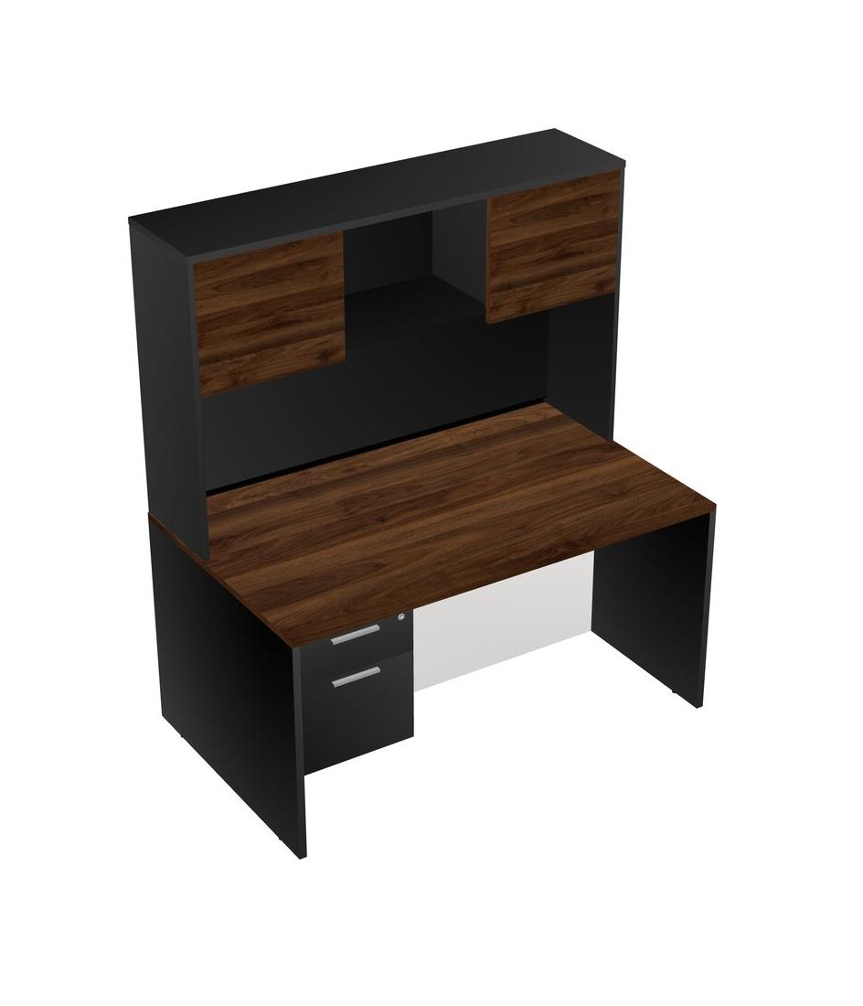 Bureau Rectangulaire En Noyer Columbia Avec Tiroirs Suspendus Noirs Et Bahut Noir