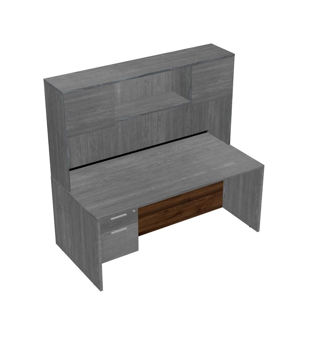 Bureau Rectangulaire Gris Avec Tiroirs Suspendus Gris Et Bahut Gris