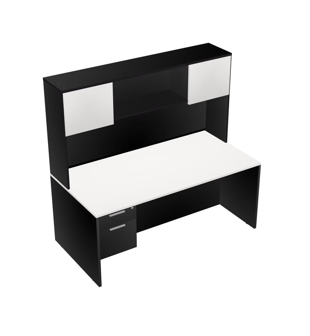Bureau Rectangulaire Blanc Avec Tiroirs Suspendus Noirs Et Bahut Noir