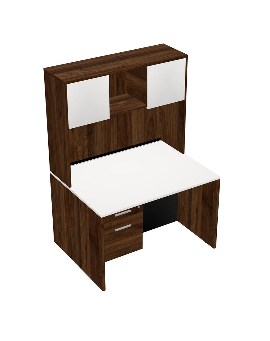 Bureau Rectangulaire Blanc Avec Tiroirs Suspendus En Noyer Columbia Et Buffet En Noyer Columbia
