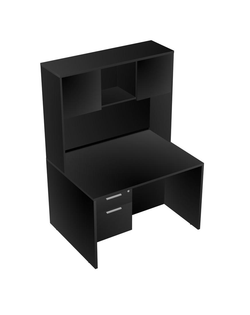 Bureau Rectangulaire Noir Avec Tiroirs Suspendus Noirs Et Bahut Noir