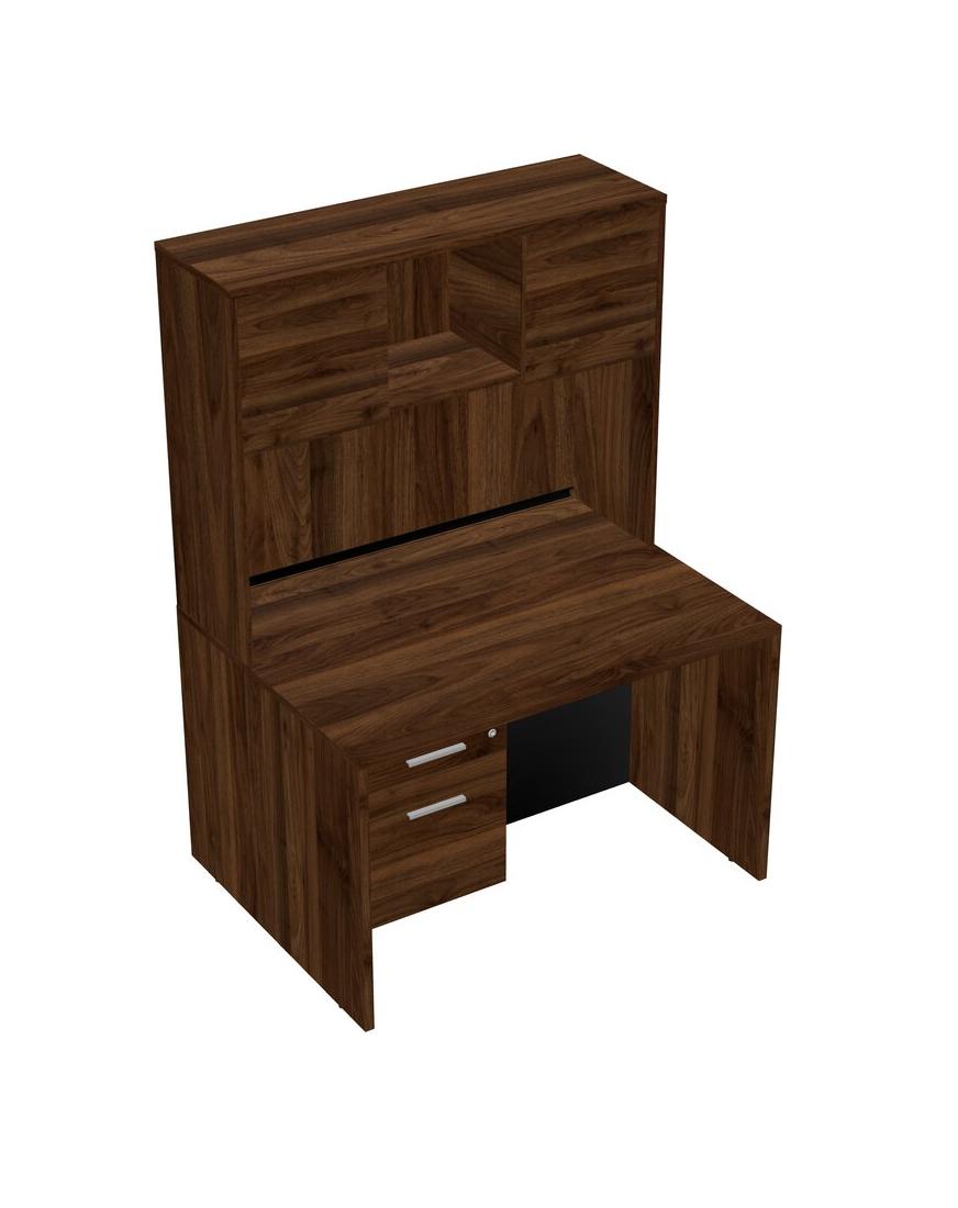 Bureau Rectangulaire En Noyer Columbia, Tiroirs Suspendus En Noyer Columbia Et Huche En Noyer Columbia