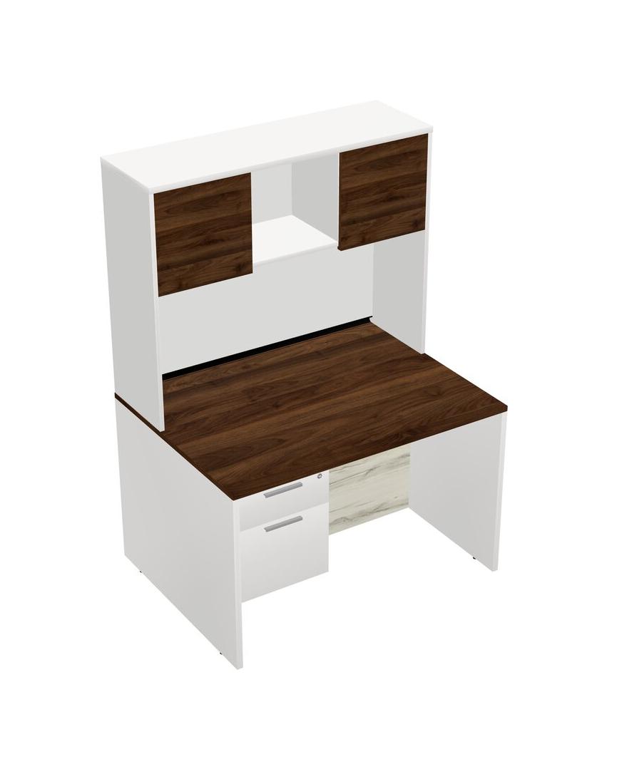 Bureau Rectangulaire En Noyer Columbia Avec Tiroirs Suspendus Blancs Et Bahut Blanc