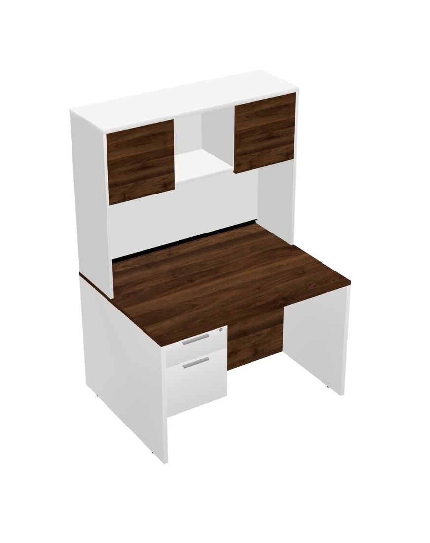 Bureau Rectangulaire En Noyer Columbia Avec Tiroirs Suspendus Blancs Et Bahut Blanc