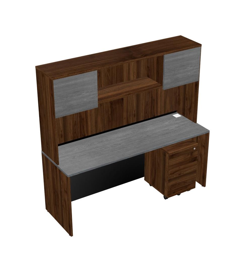 Bureau Rectangulaire Gris Avec Tiroirs Mobiles En Bois De Noyer Columbia Et Huche En Noyer Columbia