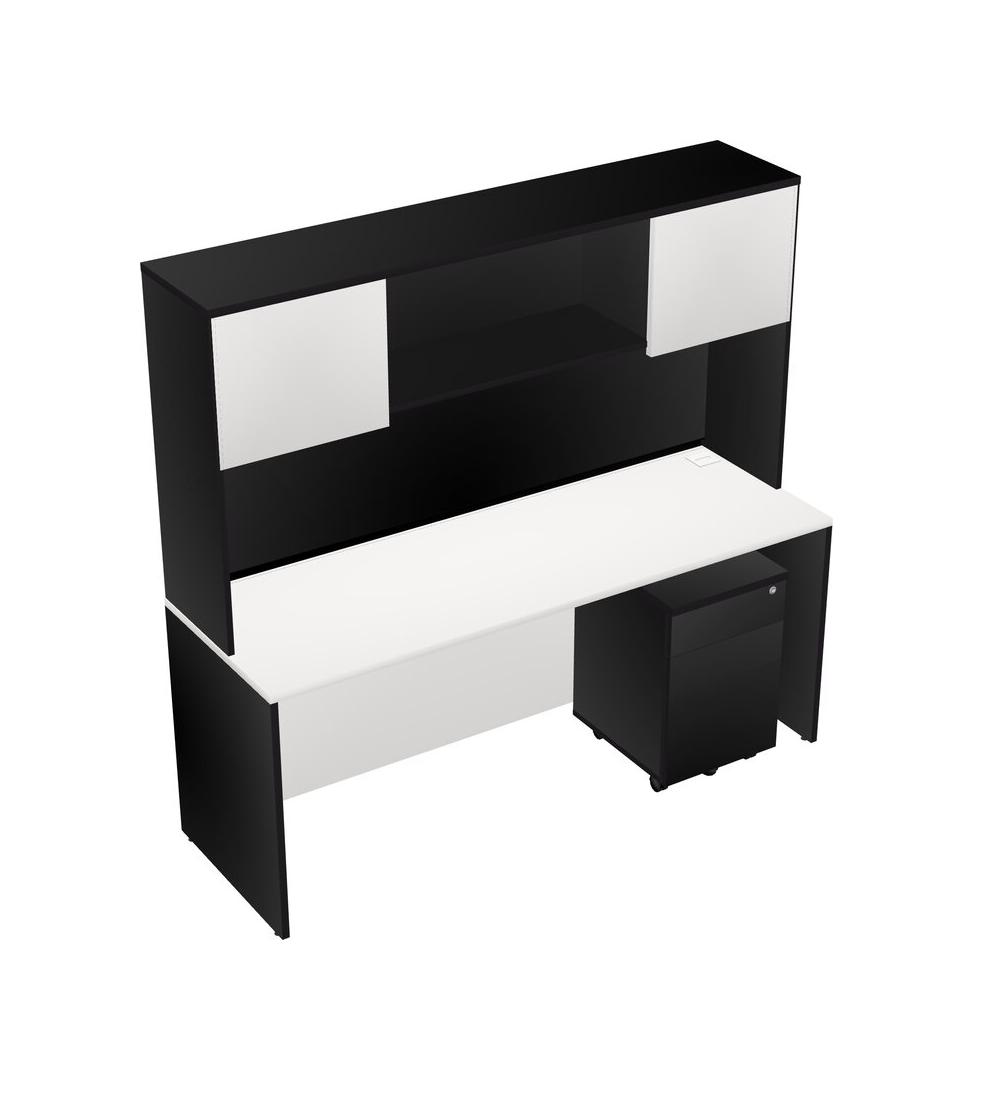 Bureau Rectangulaire Blanc Avec Tiroirs Mobiles En Bois Noir Et Bahut Noir