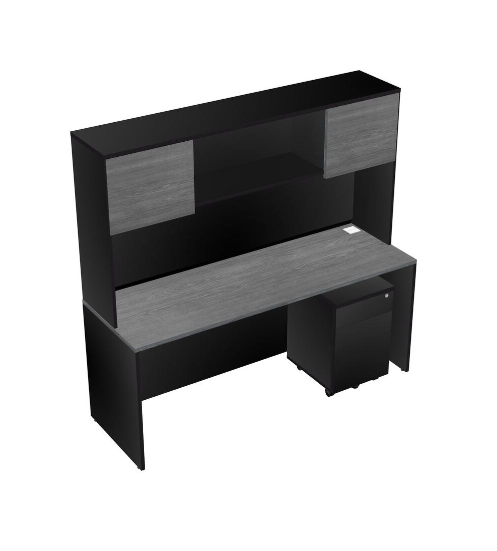 Bureau Rectangulaire Gris Avec Tiroirs Mobiles En Bois Noir Et Bahut Noir