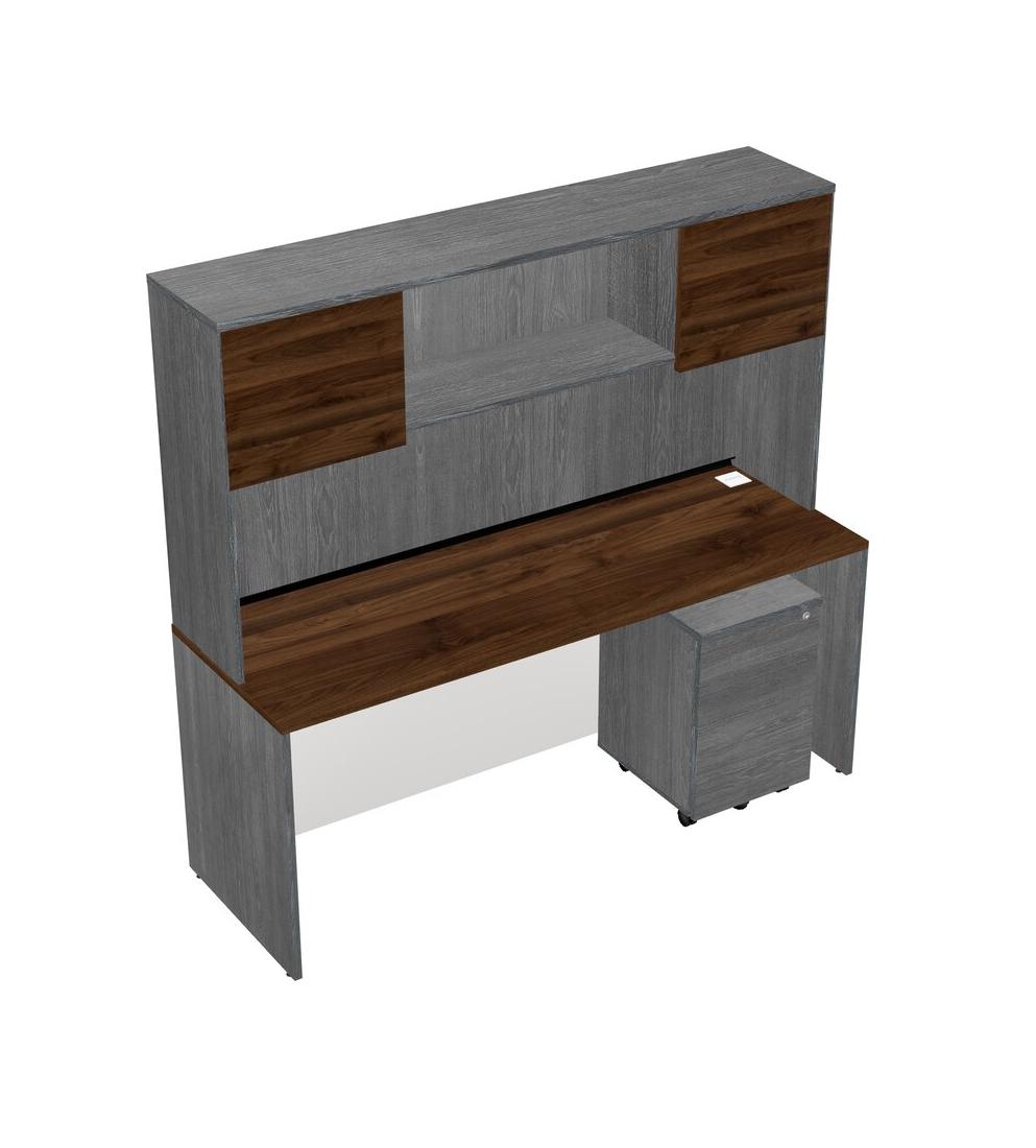 Bureau Rectangulaire En Noyer Columbia Avec Tiroirs Mobiles En Bois Gris Et Clapier Gris