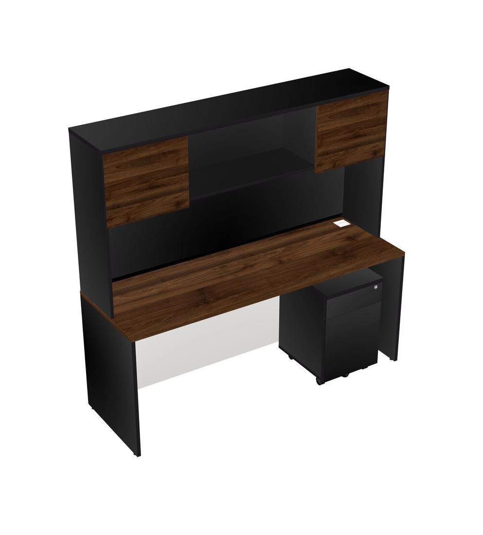 Bureau Rectangulaire En Noyer Columbia Avec Tiroirs Mobiles En Bois Noir Et Clapier Noir
