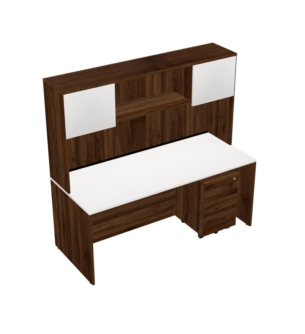 Bureau Rectangulaire Blanc Avec Tiroirs Mobiles En Bois De Noyer Columbia Et Huche En Noyer Columbia