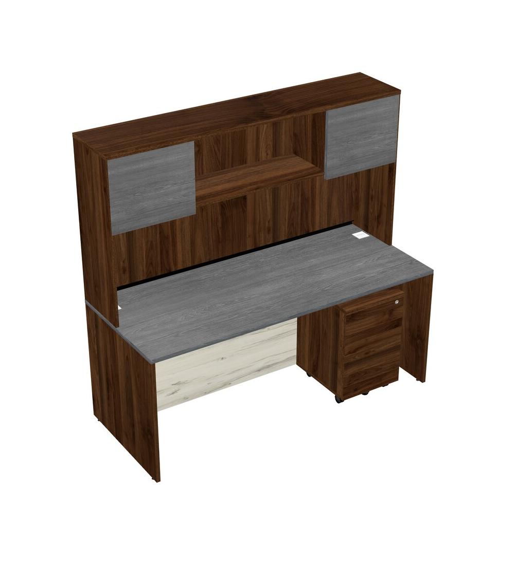 Bureau Rectangulaire Gris Avec Tiroirs Mobiles En Bois De Noyer Columbia Et Huche En Noyer Columbia