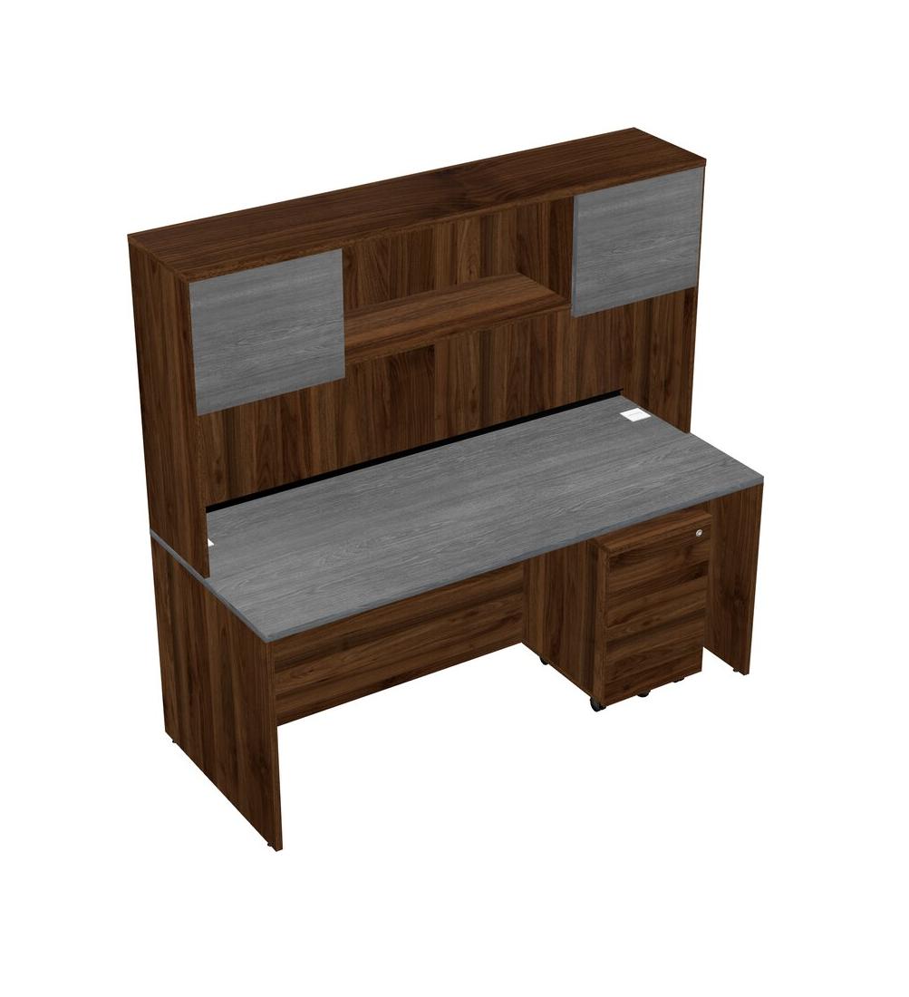 Bureau Rectangulaire Gris Avec Tiroirs Mobiles En Bois De Noyer Columbia Et Huche En Noyer Columbia