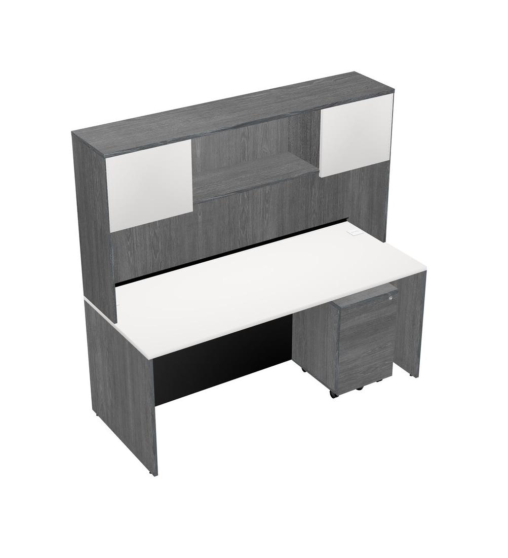 Bureau Rectangulaire Blanc Avec Tiroirs Mobiles En Bois Gris Et Clapier Gris