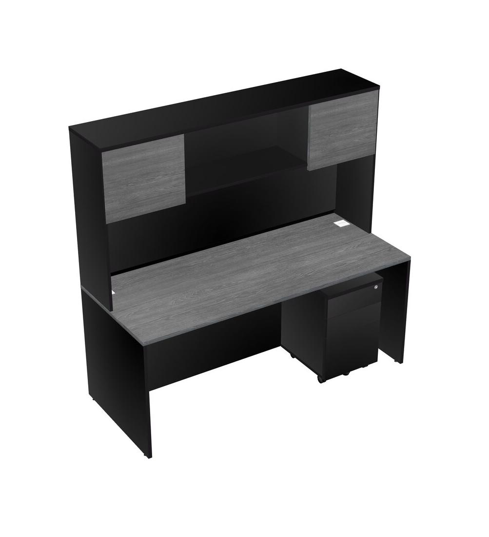 Bureau Rectangulaire Gris Avec Tiroirs Mobiles En Bois Noir Et Bahut Noir