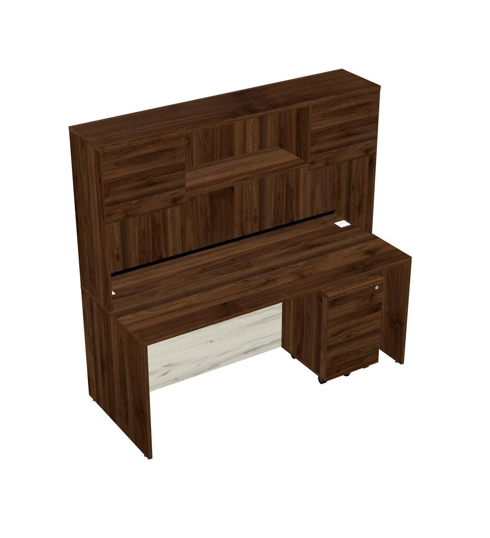 Bureau Rectangulaire En Noyer Columbia, Tiroirs Mobiles En Bois Et Clapier En Noyer Columbia