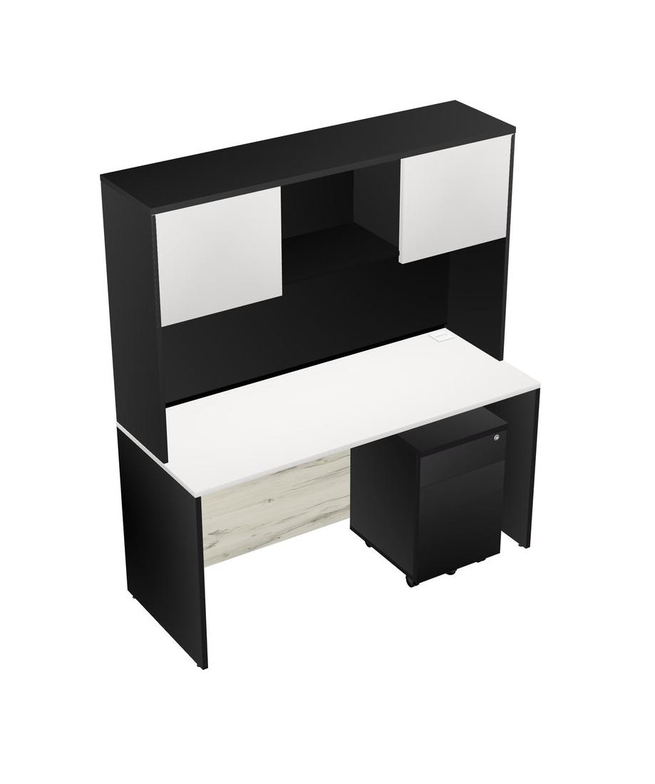 Bureau Rectangulaire Blanc Avec Tiroirs Mobiles En Bois Noir Et Bahut Noir