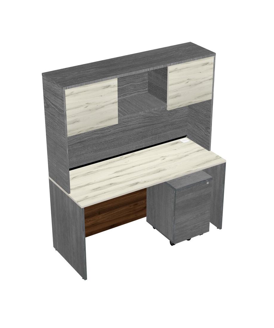 Bureau Rectangulaire Heinne Holz Avec Tiroirs Mobiles En Bois Gris Et Clapier Gris
