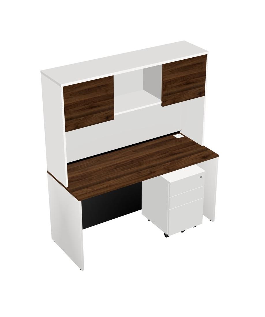 Bureau Rectangulaire En Noyer Columbia Avec Tiroirs Mobiles En Bois Blanc Et Bahut Blanc