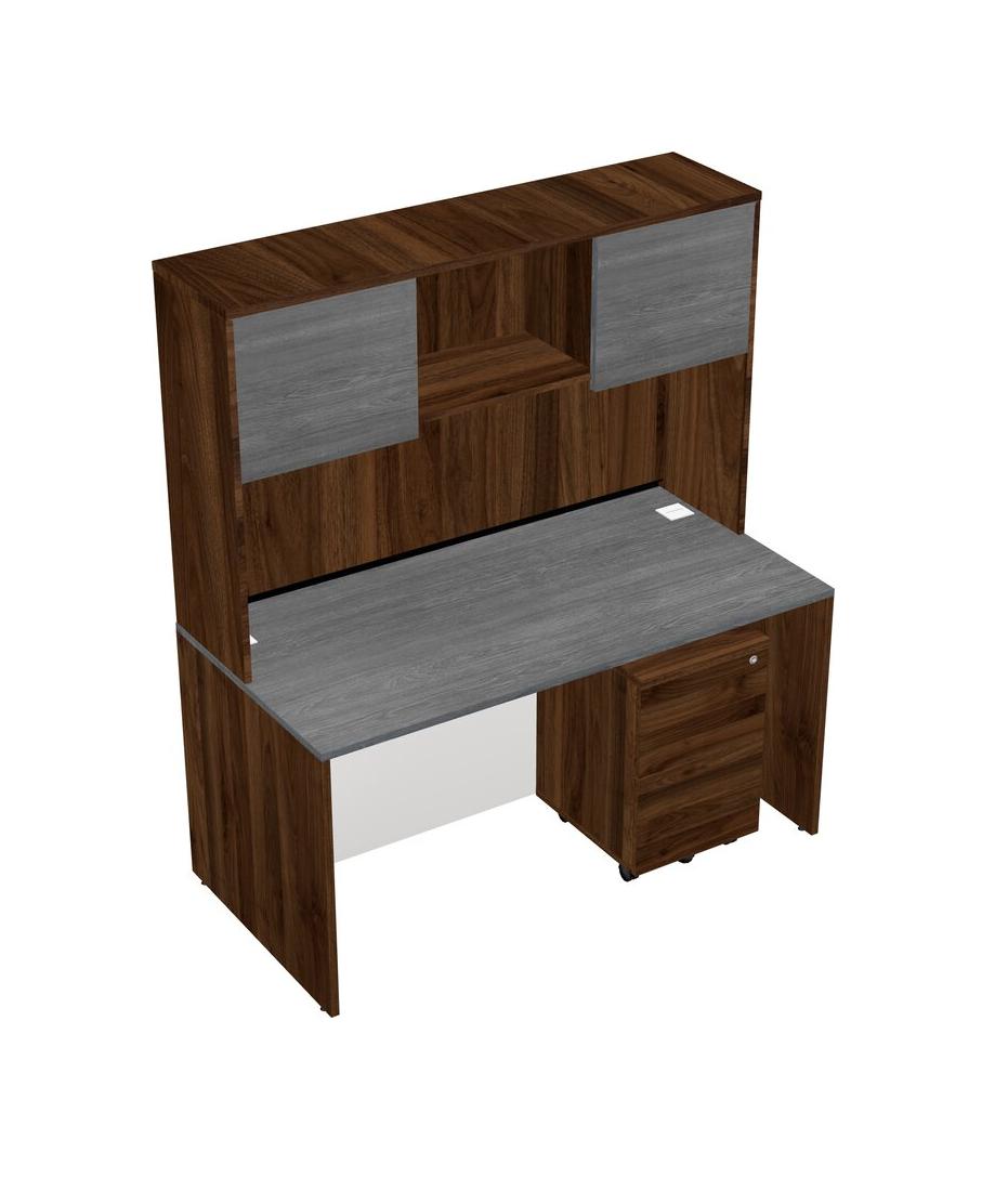 Bureau Rectangulaire Gris Avec Tiroirs Mobiles En Bois De Noyer Columbia Et Huche En Noyer Columbia