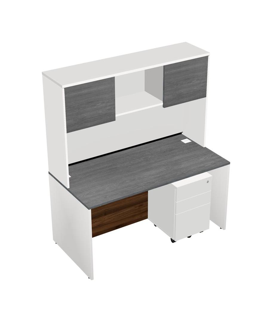 Bureau Rectangulaire Gris Avec Tiroirs Mobiles En Bois Blanc Et Bahut Blanc
