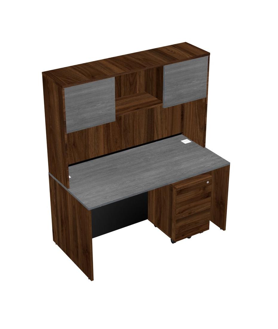 Bureau Rectangulaire Gris Avec Tiroirs Mobiles En Bois De Noyer Columbia Et Huche En Noyer Columbia