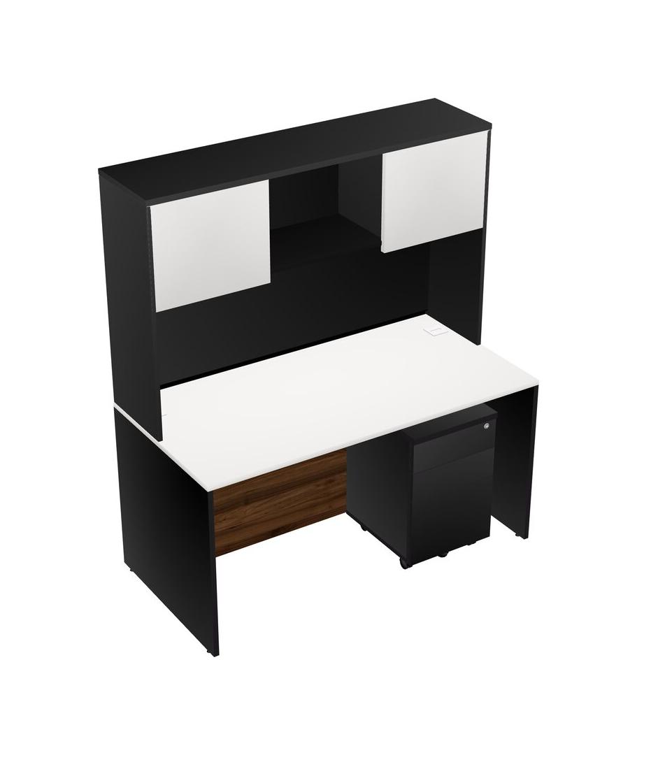 Bureau Rectangulaire Blanc Avec Tiroirs Mobiles En Bois Noir Et Bahut Noir