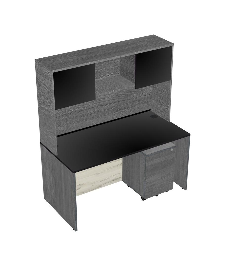 Bureau Rectangulaire Noir Avec Tiroirs Mobiles En Bois Gris Et Clapier Gris