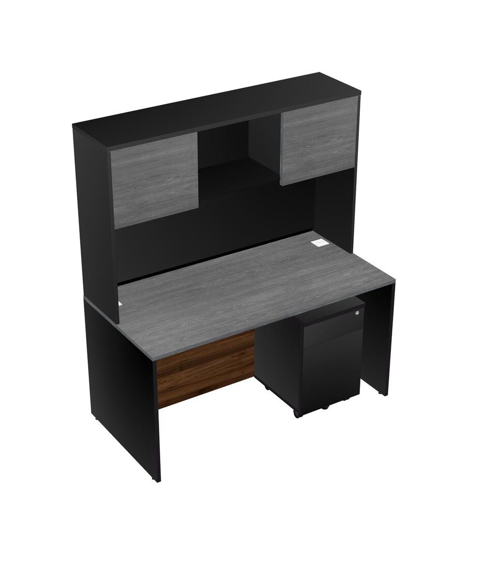 Bureau Rectangulaire Gris Avec Tiroirs Mobiles En Bois Noir Et Bahut Noir