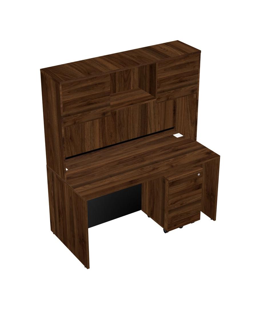 Bureau Rectangulaire En Noyer Columbia, Tiroirs Mobiles En Bois Et Clapier En Noyer Columbia