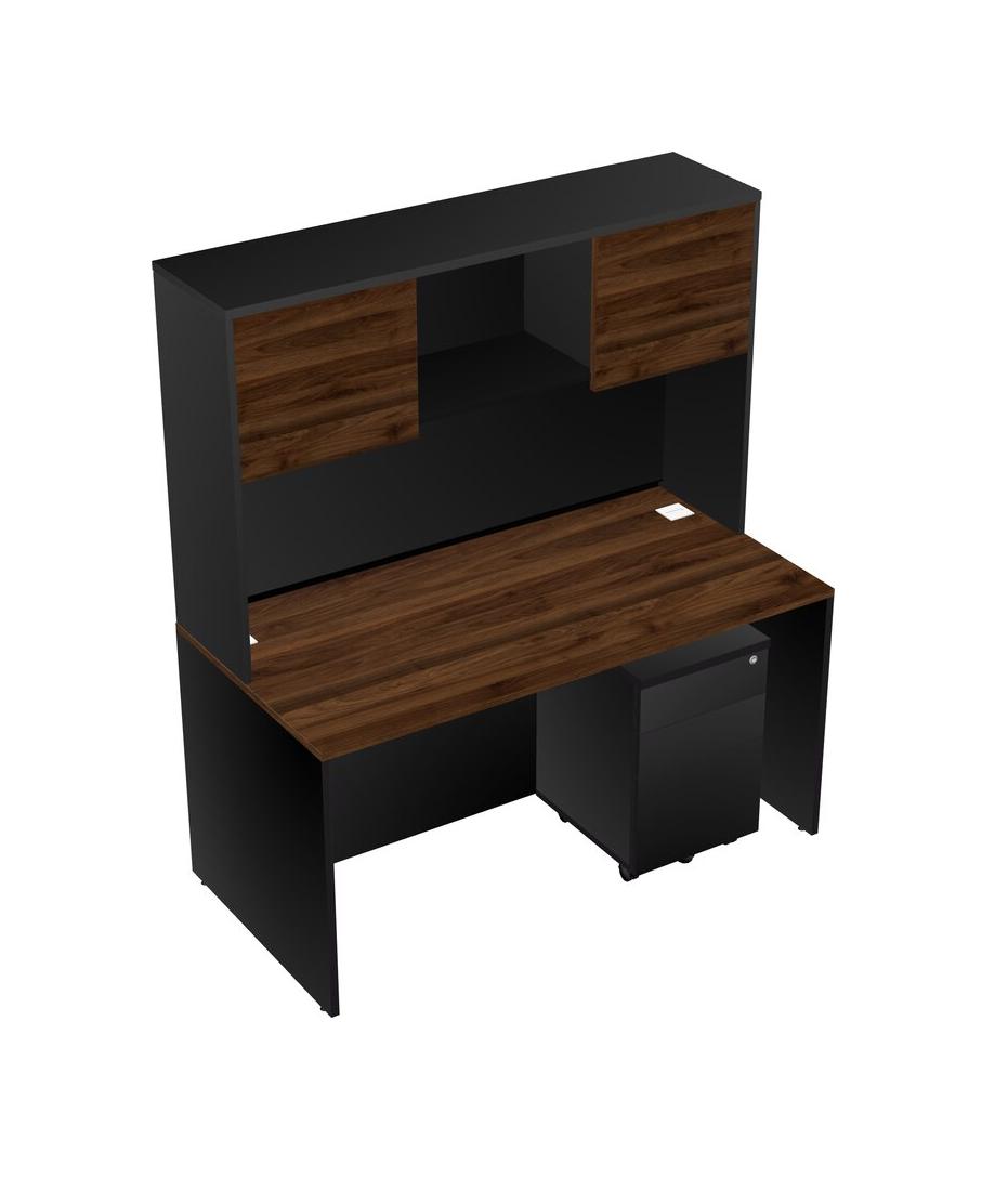 Bureau Rectangulaire En Noyer Columbia Avec Tiroirs Mobiles En Bois Noir Et Clapier Noir