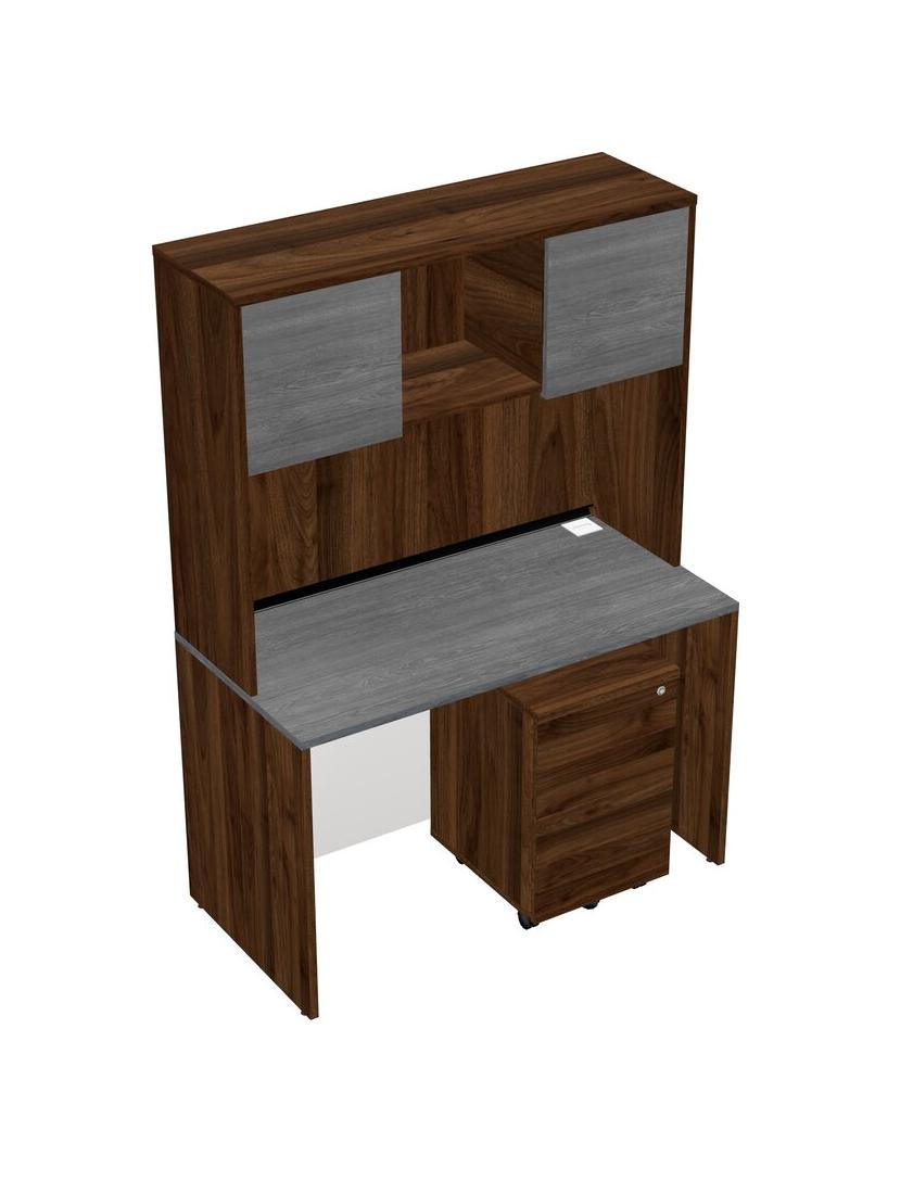 Bureau Rectangulaire Gris Avec Tiroirs Mobiles En Bois De Noyer Columbia Et Huche En Noyer Columbia